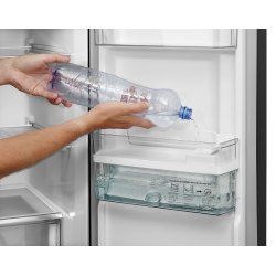Díky zabudovanému dávkovači na vodu si můžete čepovat svěží vodu bez nutnosti připojení k vodovodnímu řadu. Ve dveřích chladničky se nachází zásobník o objemu 2 l, který zabírá minimum místa a nesnižuje její užitný objem.