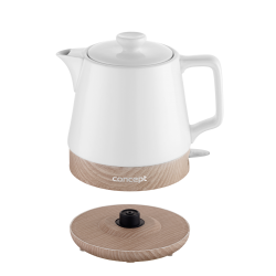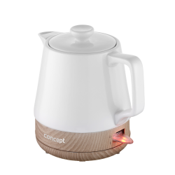 Rychlovarná konvice RK0060 zaujme na první pohled svým jedinečným designem, který stylově kombinuje keramiku a dřevo. Výhodou je, že ji můžete využívat také jako klasickou konvičku a servírovat v ní oblíbený nápoj přímo na stůl. Disponuje objemem 1 l, takže je vhodná do domácností s menším počtem členů.