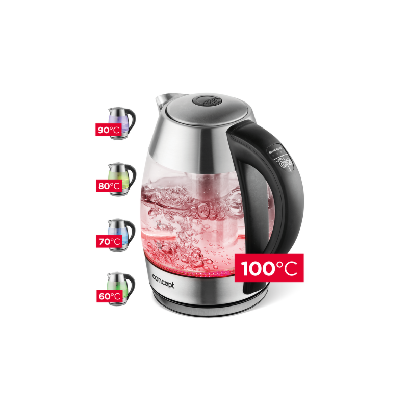 Varná konvice Concept RK4066 je vyrobena z velmi pevného, zdravotně nezávadného borosilikátového skla, které je odolné proti skvrnám.
