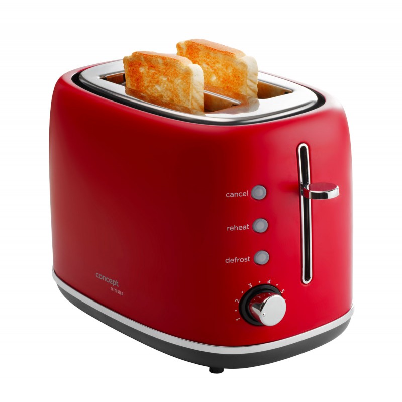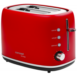 Pokud patříte mezi milovníky venkovského stylu, topinkovač Concept TE2062 Retrosign v elegantním matném plášti červené barvy vás zajisté osloví. Tento model nabízíme v dalších 3 barevných variantách: TE2060 (matná bílá), TE2061 (matná krémová) a TE2064 (matná černá). Ve spojení s rychlovarnou konvicí řady Retrosign RK333x vytvoříte dokonale sladěný set.